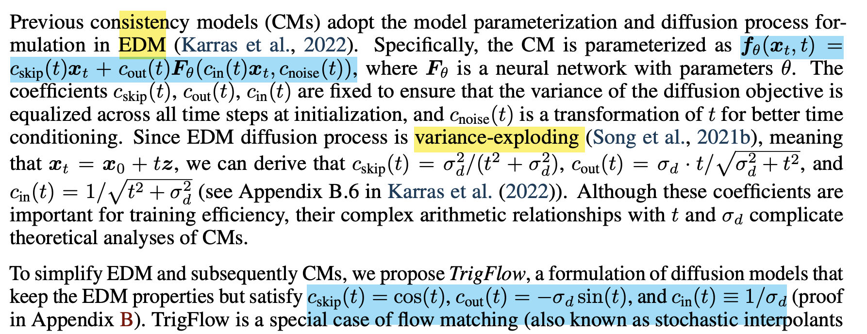 文章提出TrigFlow,提出了一种的新的参数化方案,利用三角函数,该形式是Flow Matching的一种特例