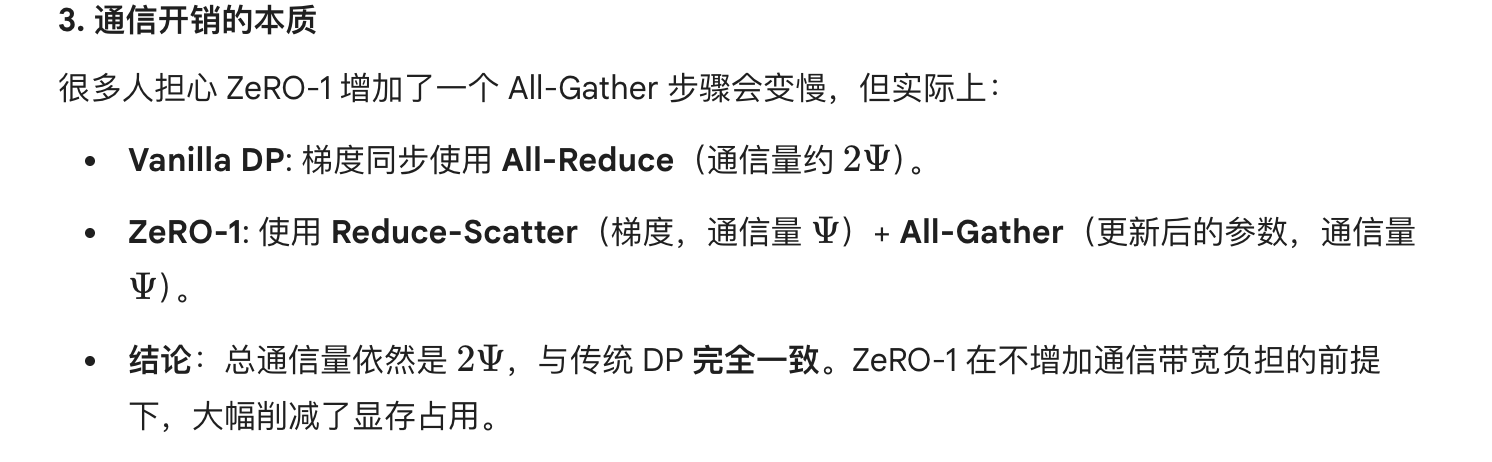 并且经过计算,整个Zero1过程的通信和传统DP完全一致,可以算得上是Free lunch