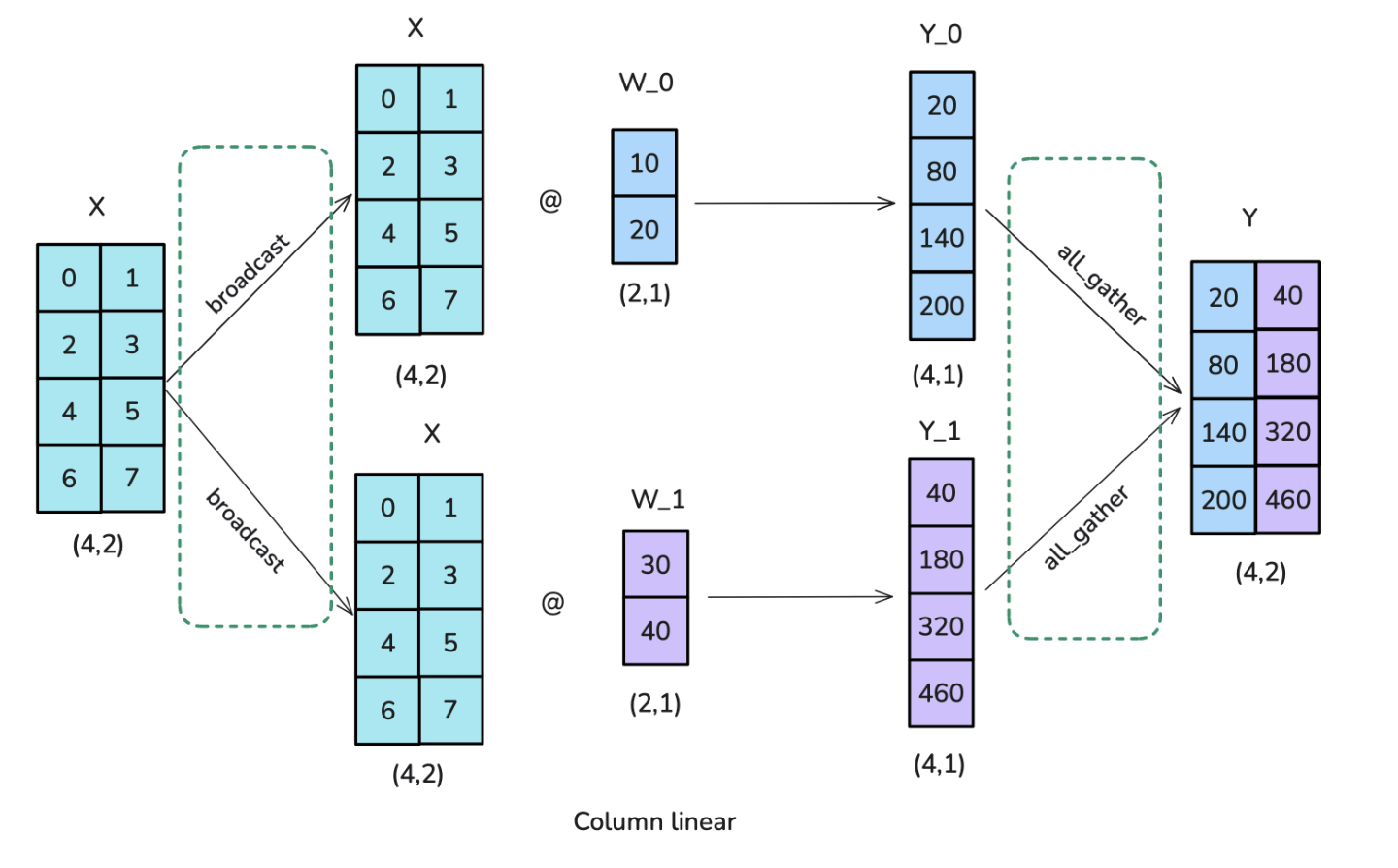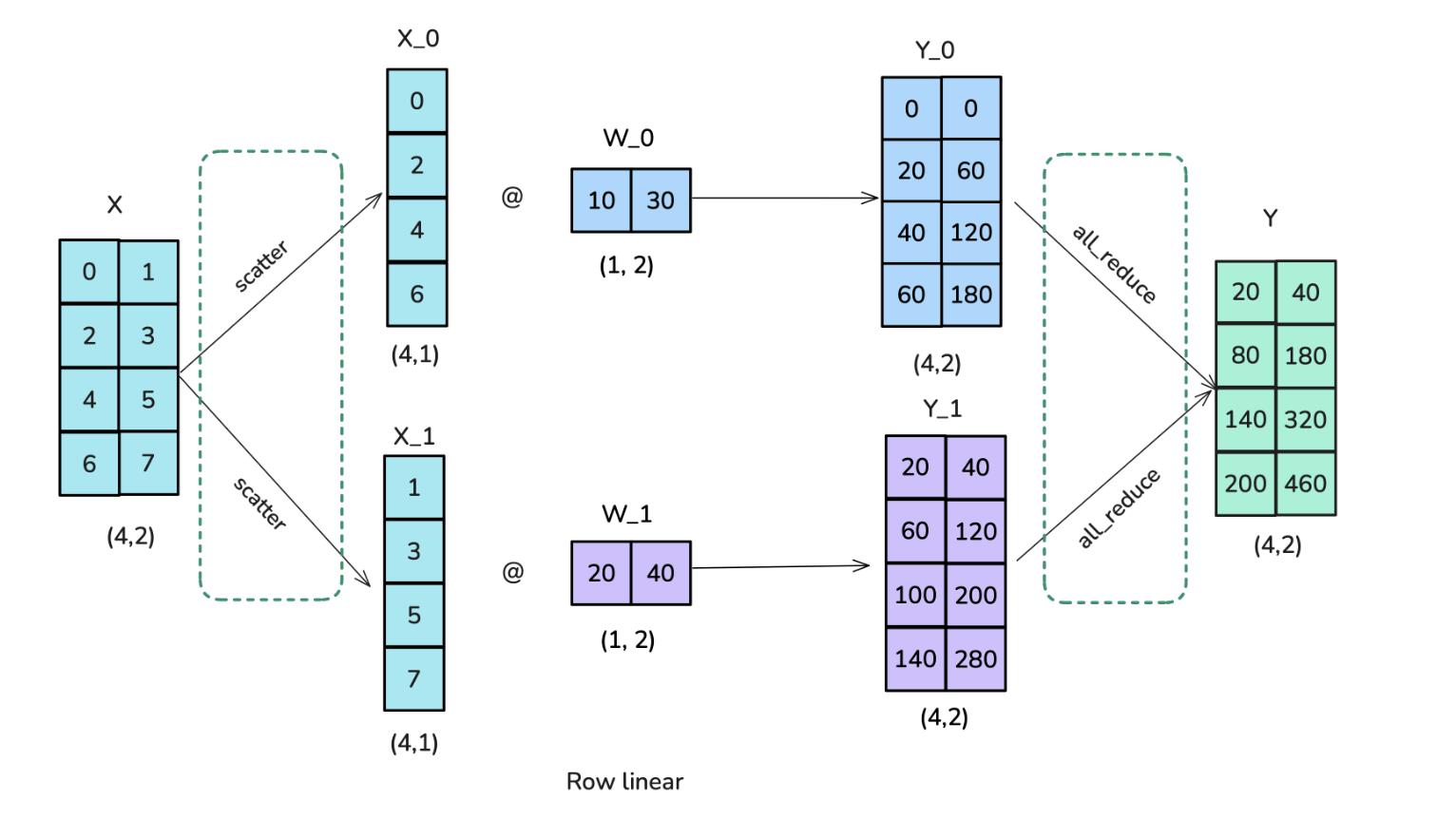以下还有行级的张量并行的示意图