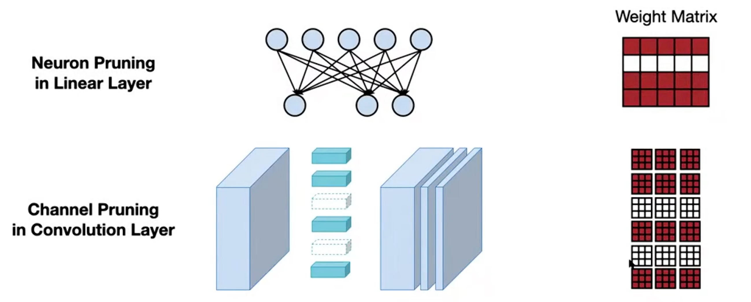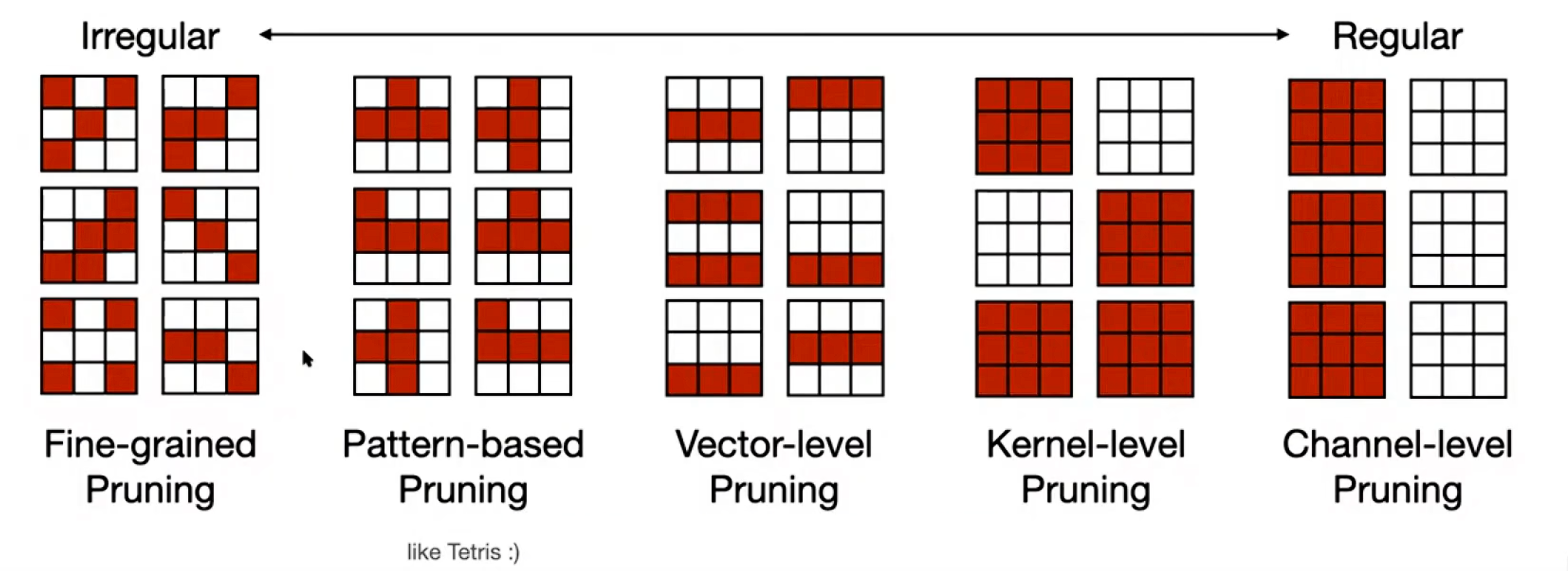 以上是全连接层的剪枝,我们也可以对于卷积层进行剪枝,相比于全连接层,卷积层的剪枝方案就更多了