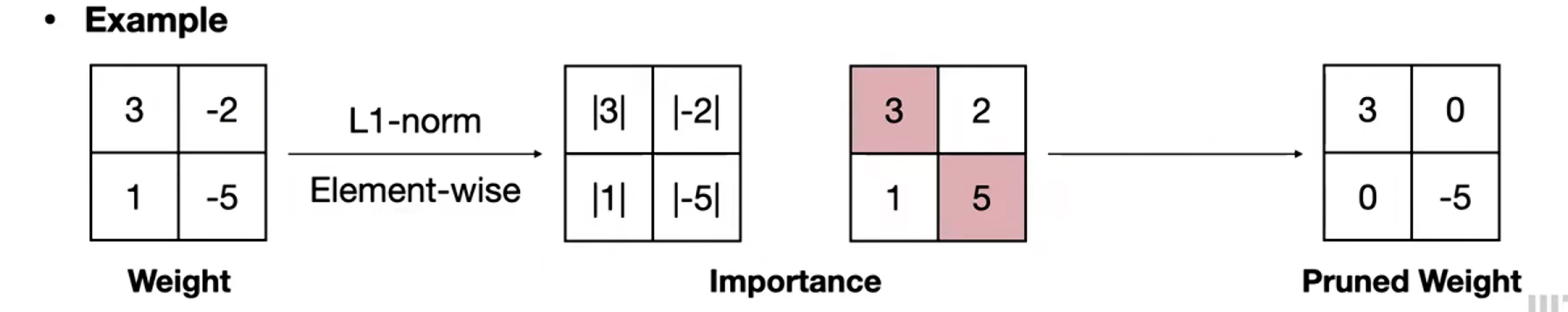 神经网络流程本质还是矩阵乘法,因此参数的绝对值基本就能够代表其对于整个模型的影响,因此方案一就是比较绝对值(L1-norm)