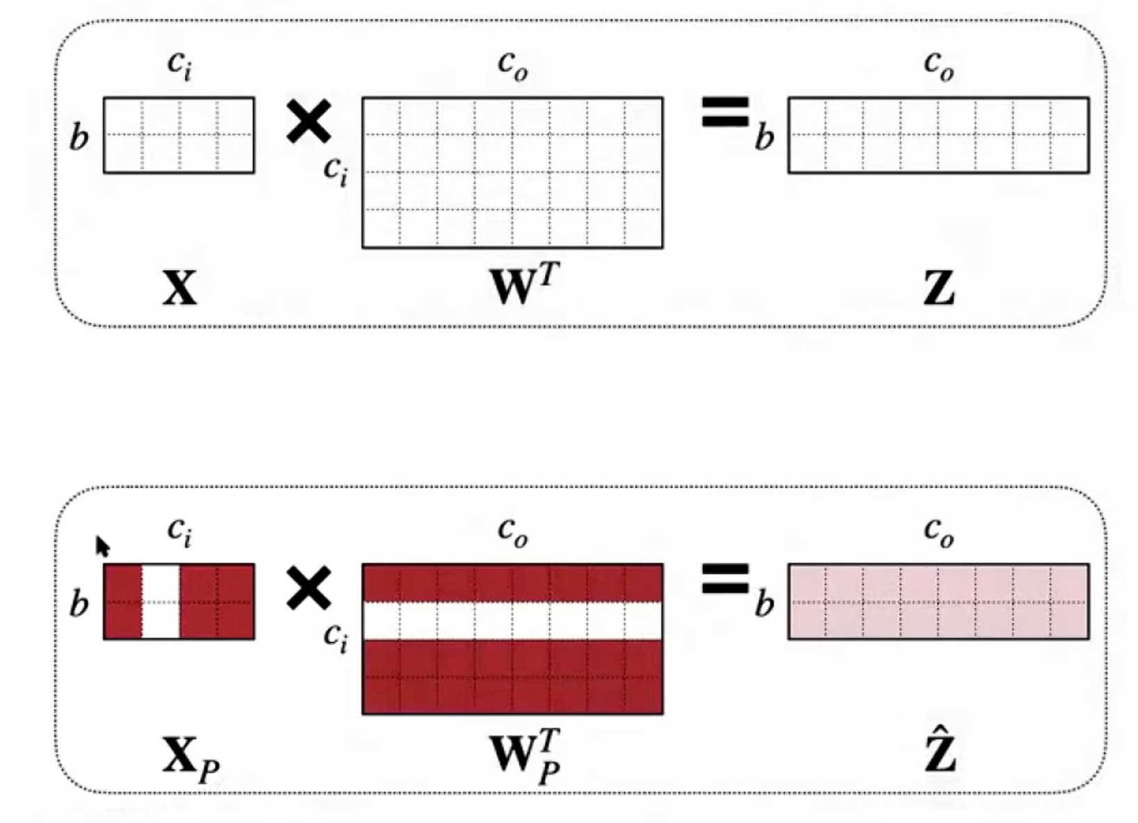 参数的剪枝和连接的剪枝是不同的,参数的剪枝往往是很粗粒度的,其相当于矩阵乘法中一行的剪枝