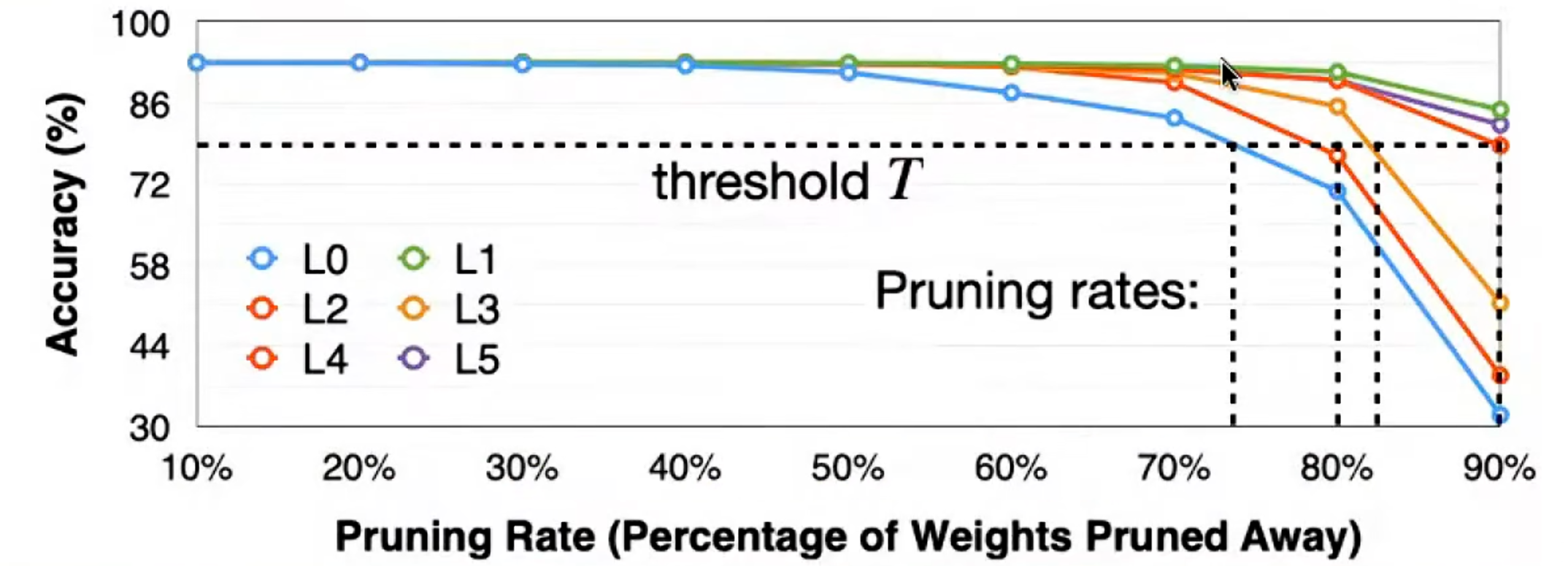 分析一层该有的pruning ratio,我们采用一种sensitivity analysis的内容,有些层对于剪枝非常敏感,另一些层则不是