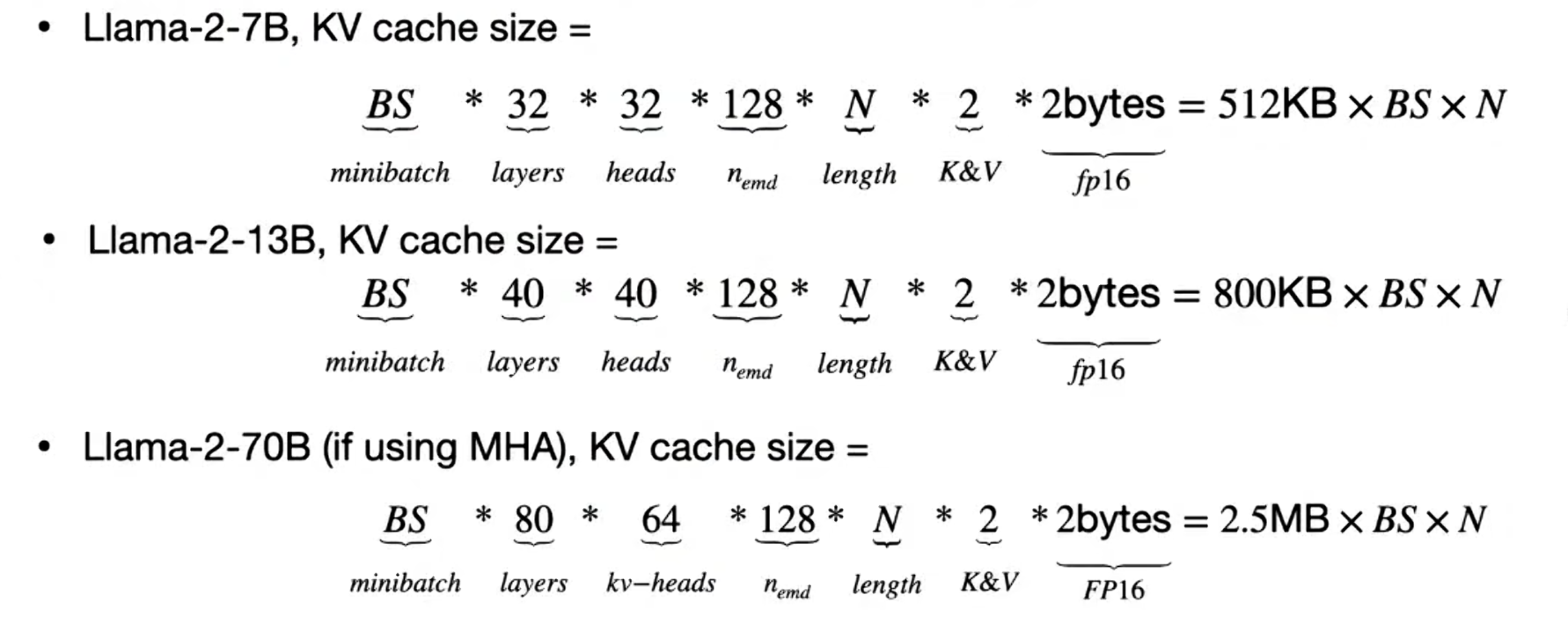 一旦用户变多(Batch size变大)KV cache 占据的存储空间甚至很容易超过模型本身的大小
