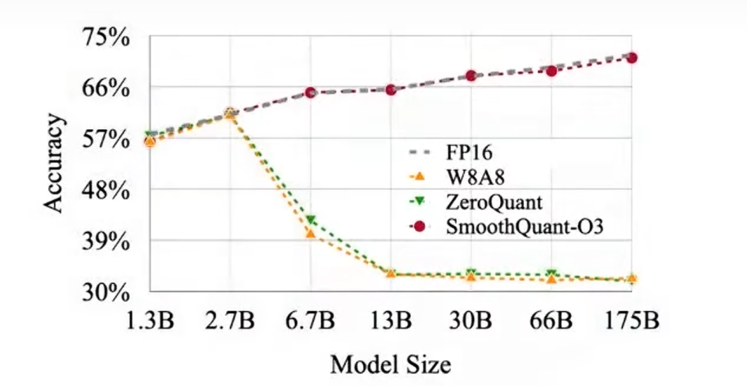 前面的课程中已经介绍过了一些量化技术,但是它们大多在LLM scaling的时候会失效,并不适用于大型模型