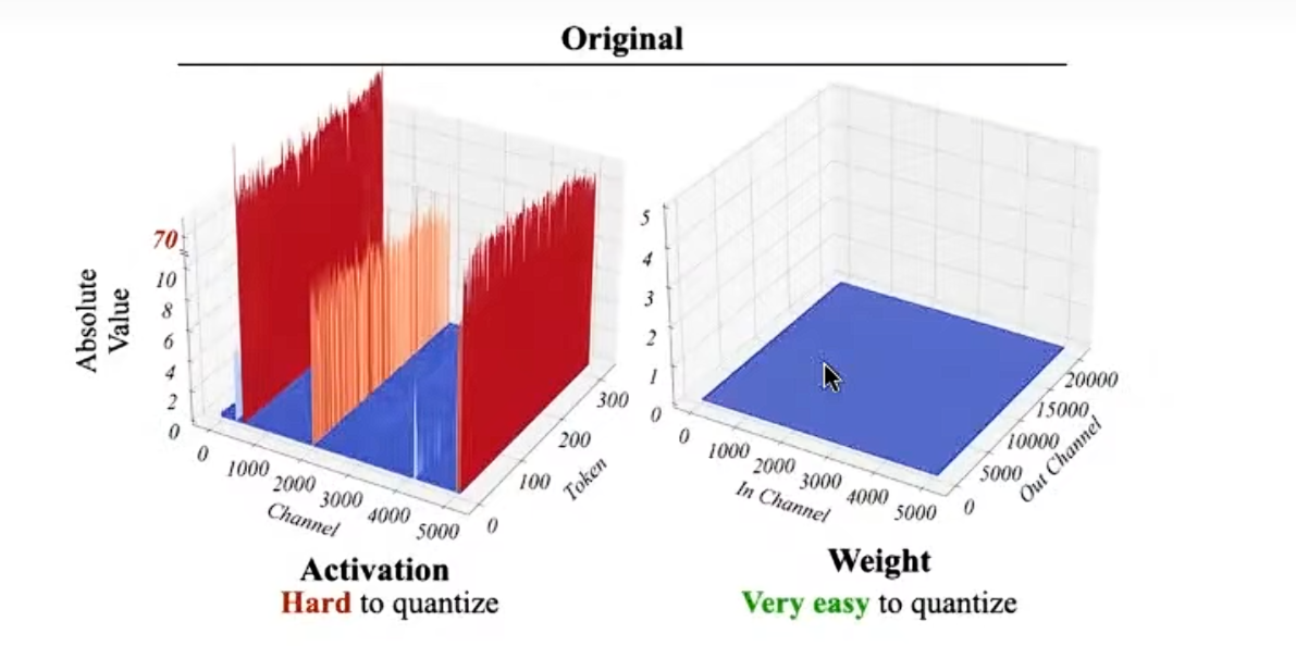 事实上在模型的训练中,参数的量化是比较容易,但是激活值的量化会相对困难
