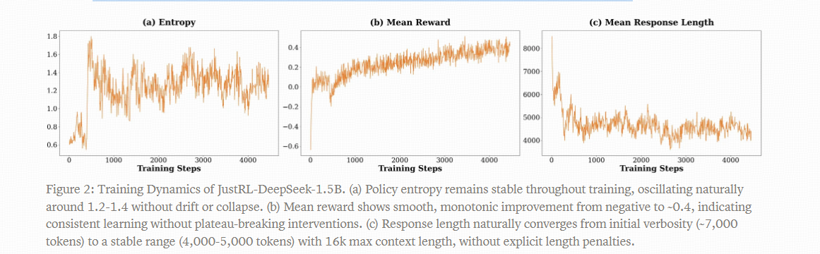 - JustRL:展现了在简单配置下RL能够达到的上限,对比可以判断一些特殊的技巧是否真的提高了上限,而不是baseline做的不够充分