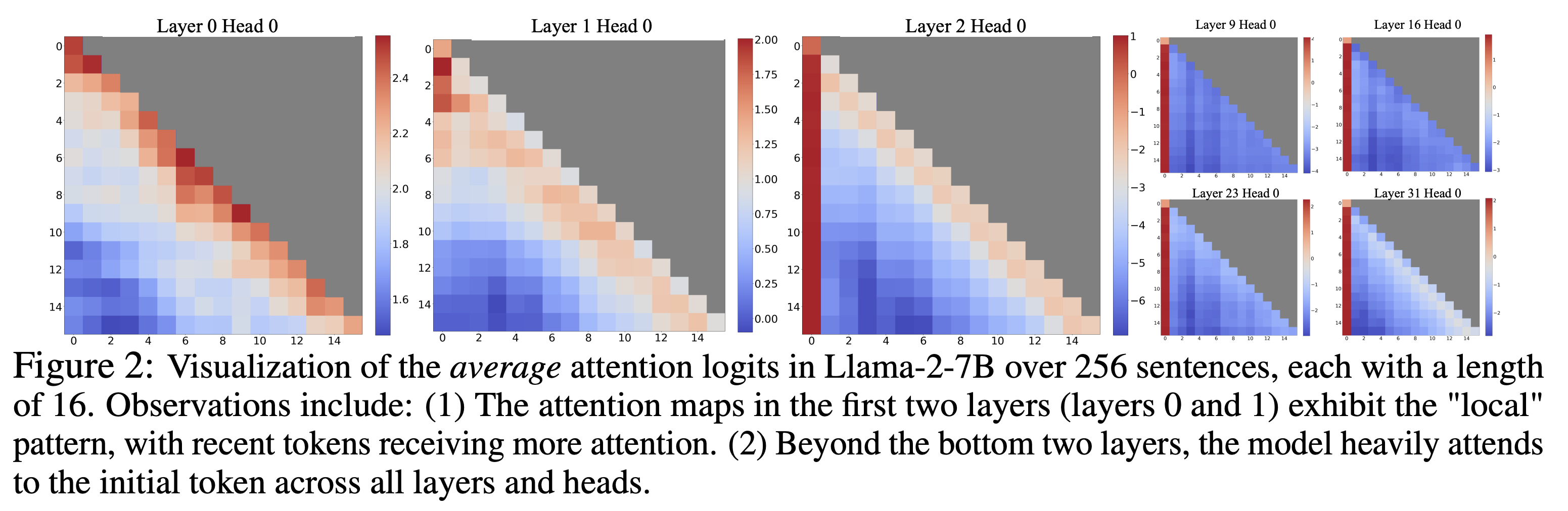 - Attention Sink: 最初的几个token产生的极大的注意力分数