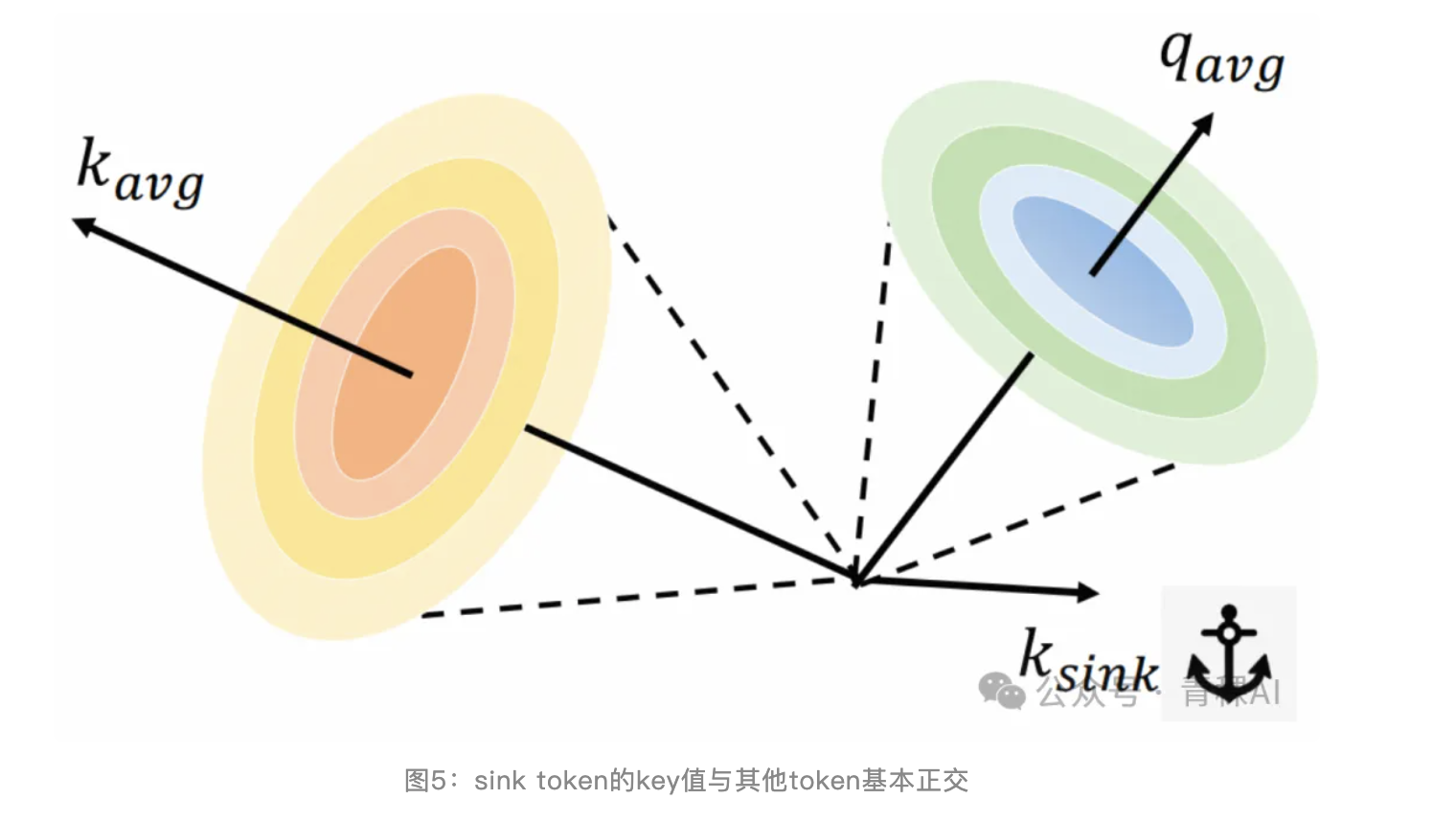 但是实际上,我们其实并不需要channel-wise outliers来形成注意力汇点,只需要让汇点token的key数值和普通token有足够大的差异即可,也就是说一种方案是靠channel维度里的几个很大的数值,另一种方案是依靠KV矩阵的学习到一些特征向量,可以把某些token和其他token正交开