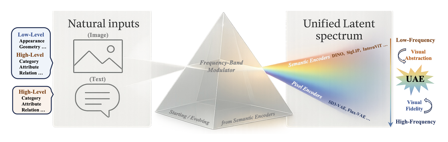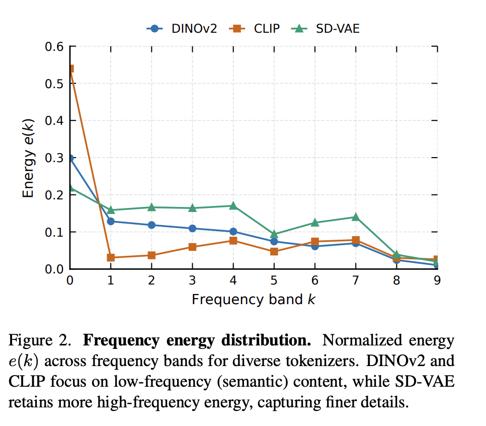 这篇论文分析了语义编码器(semantic encoder)和像素编码器(pixel encoder)的频谱差异,一个关注高频细节一个关注低频细节