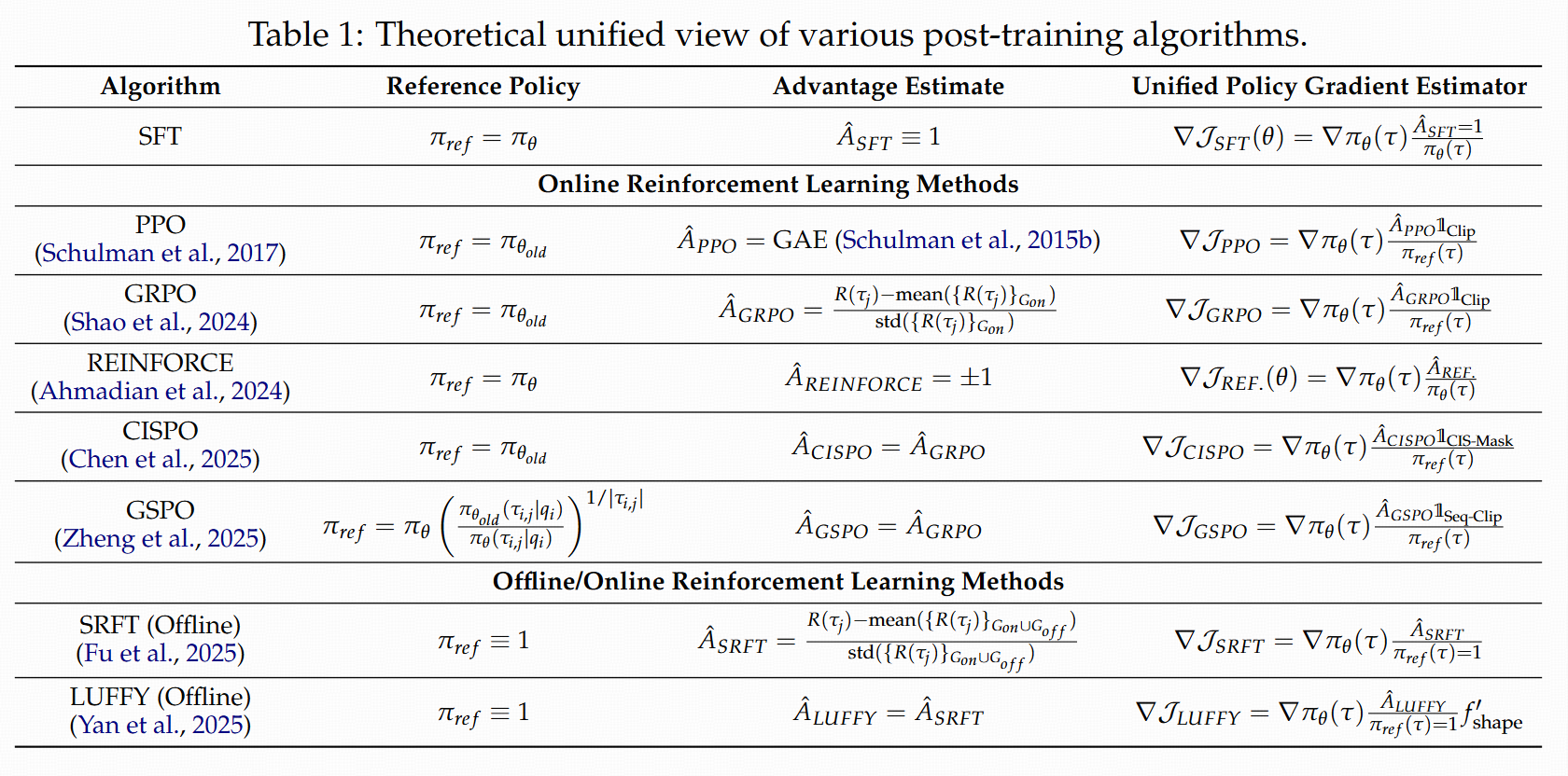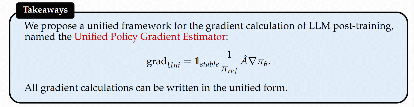 通过计算大多常见的Post-Training的算法的梯度估计形式,可以统一成一个形式