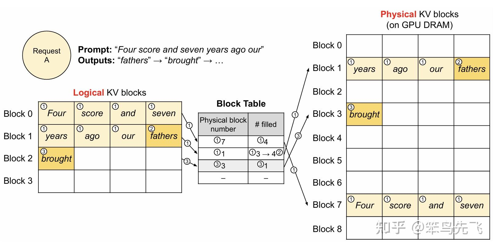 - 物理页帧 -> KV Cache 块 (Block)